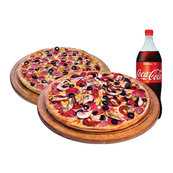 2 Büyük Boy Pizza + İçecek 1 L